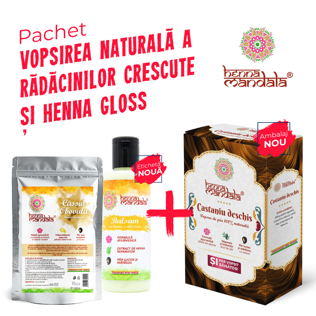 Pachet „Vopsirea naturală a rădăcinilor crescute și henna gloss”